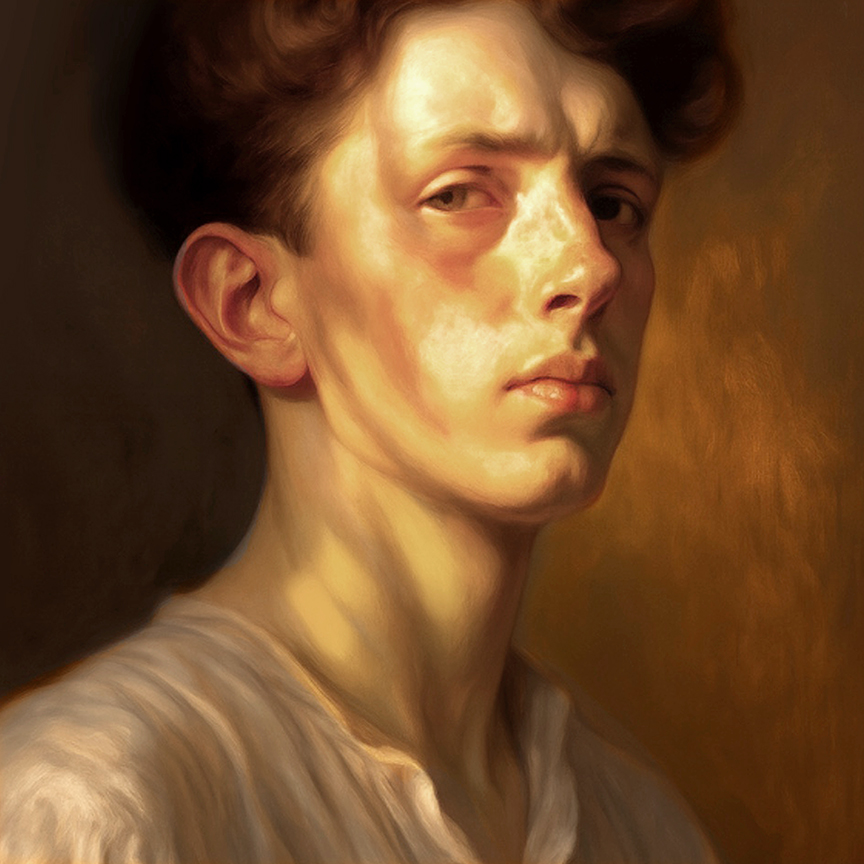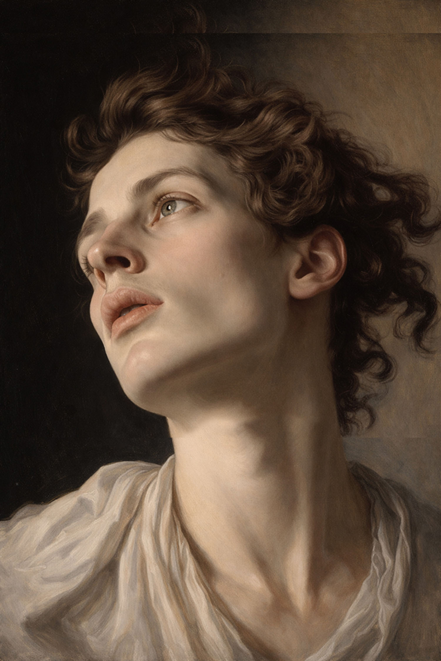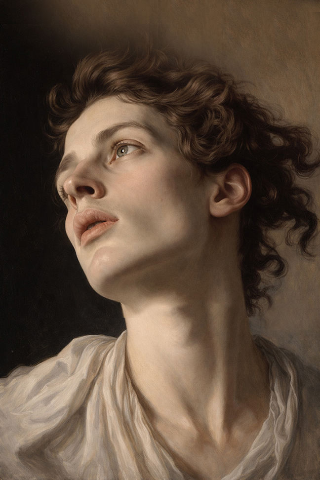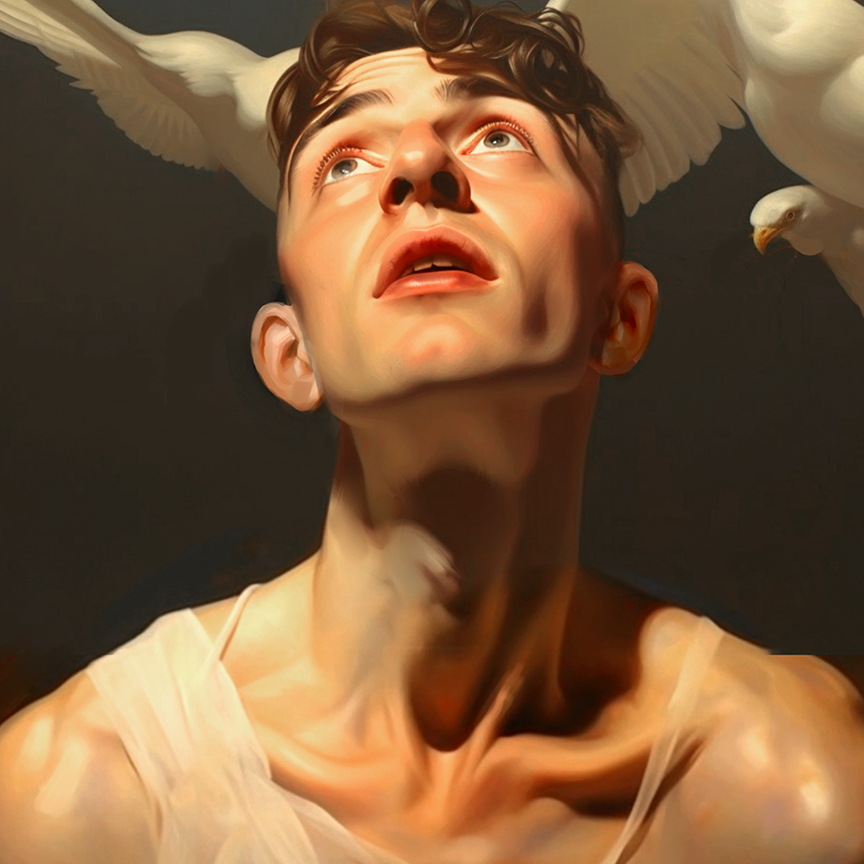 Classically, Icarus is shown as a fallen angel, a muscled body in freefall. The focus is mostly on his flight. (Not his face.)