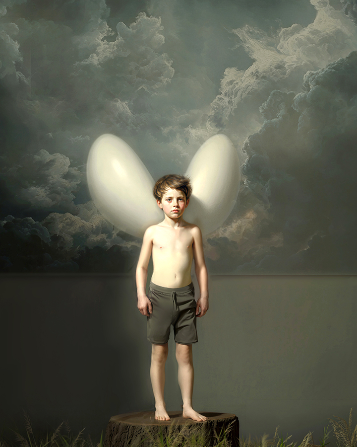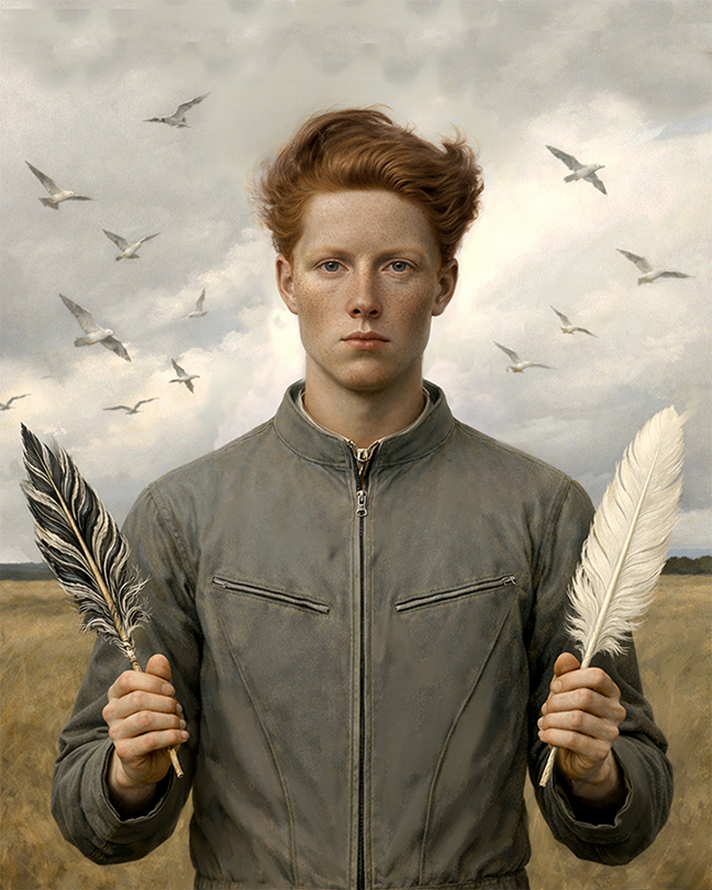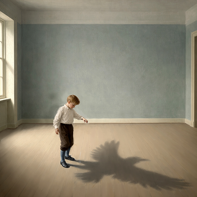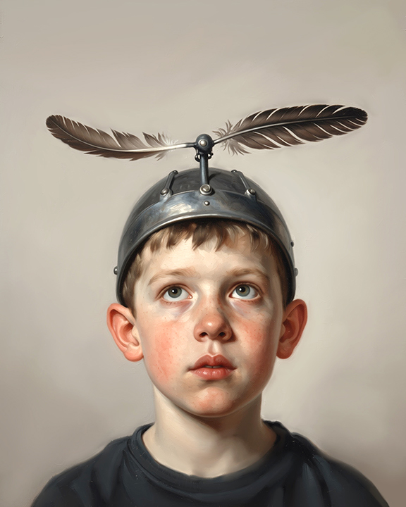 I imagine Icarus as a child, dreaming of adventure; Icarus as an adolescent, dreaming of escape. I think about the struggle with a demanding father, about the race to an unforgiving horizon line. I think about heat and flight but even more about terror and regret, and if I’m thinking about fathers, I’m thinking even more about feathers, weightless but mighty, ornamental and operational, both.